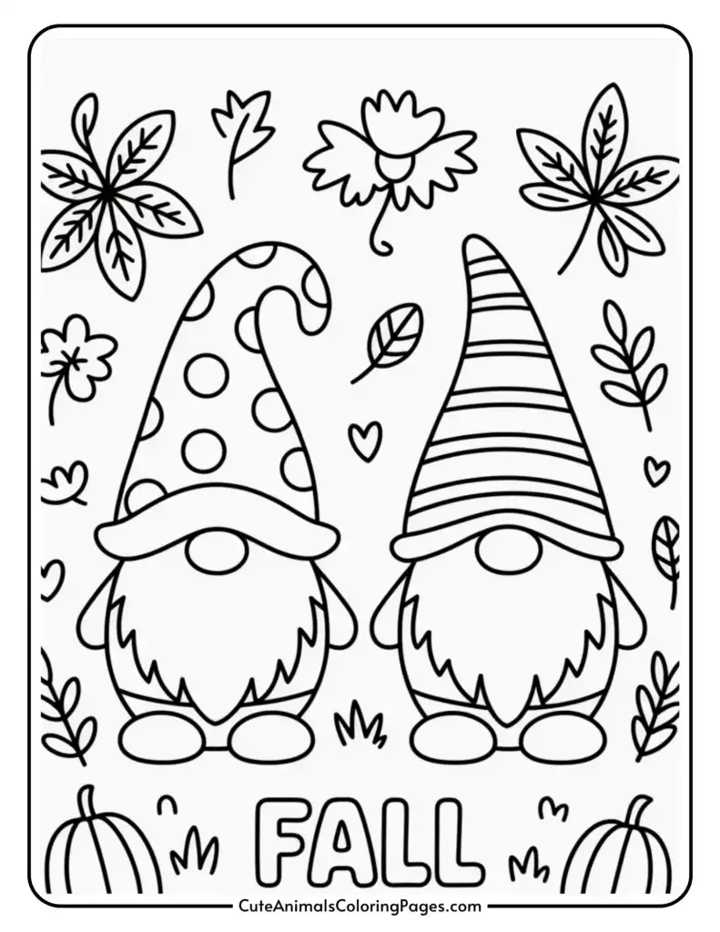 Color These Cozy Fall Gnomes with Leaves and Pumpkins
